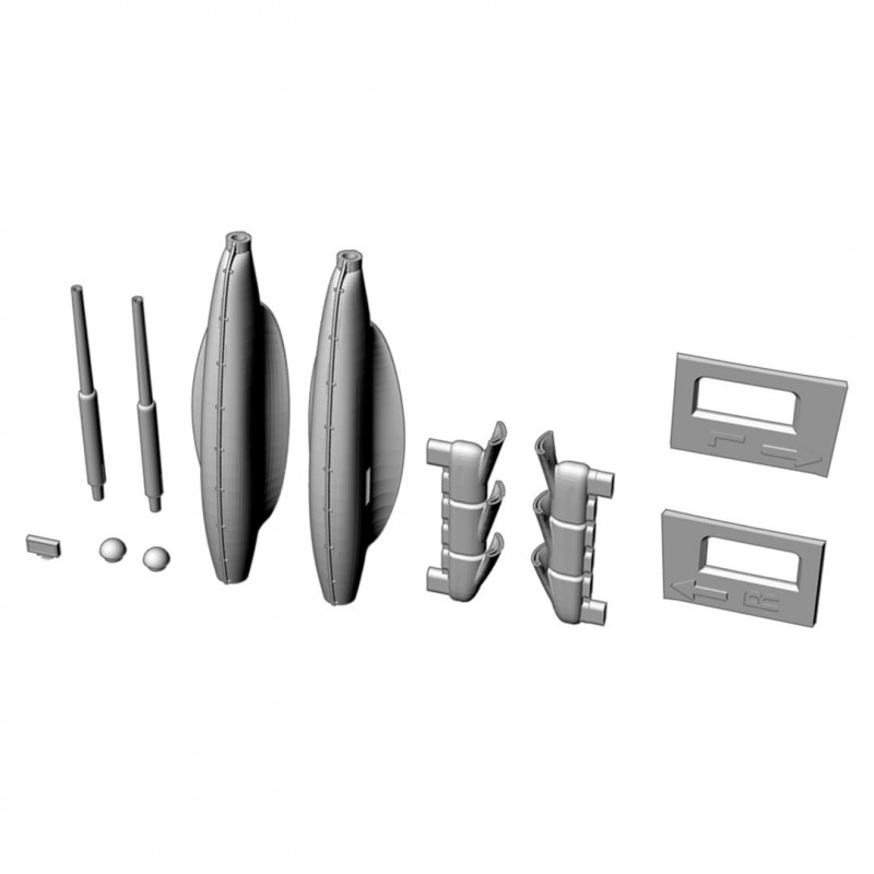 • Exklusive 3D-Druckteile: Kanonen, Auspuffrohre, Schablonen für die Modifizierung des Flügels auf Typ D.