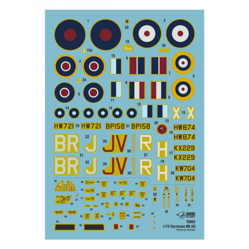 Hurricane Mk II D, Modellbausatz aus Kunststoffspritzguss mit 3D-gedruckten Teilen, Maßstab 1:72.
