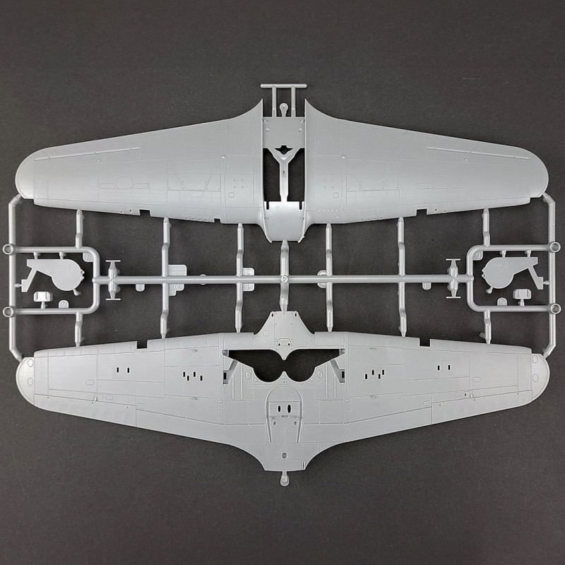 In der Schachtel finden Sie einen Modellbausatz, der die Oberflächen des Flugzeugs realistisch wiedergibt: durchhängendes Gewebe, feine Panel-Linien, bündige und pilzförmige Nieten (wie beim Original). Der Innenraum des Cockpits und die Fahrwerksschächte überraschen durch den Reichtum an Konstruktionsdetails und Ausstattung.