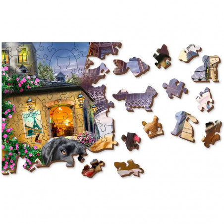 Wooden Jigsaw Puzzle 200 Pieces “Puppies in Paris” – A Charming Stroll in the City of Lights
