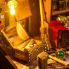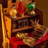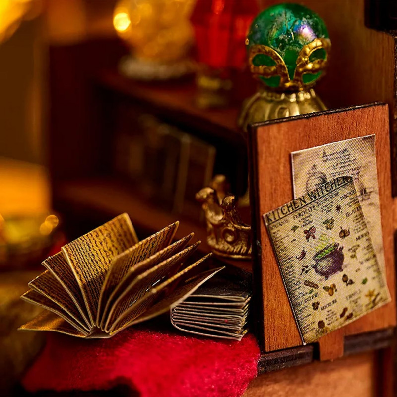 Ein Dekor, das auf einem kleinen Laden basiert, der mit zahlreichen Gegenständen rund um die Magie gefüllt ist, mit Lichteffekten.