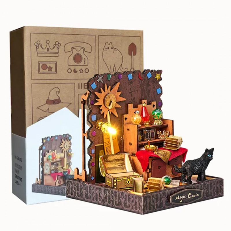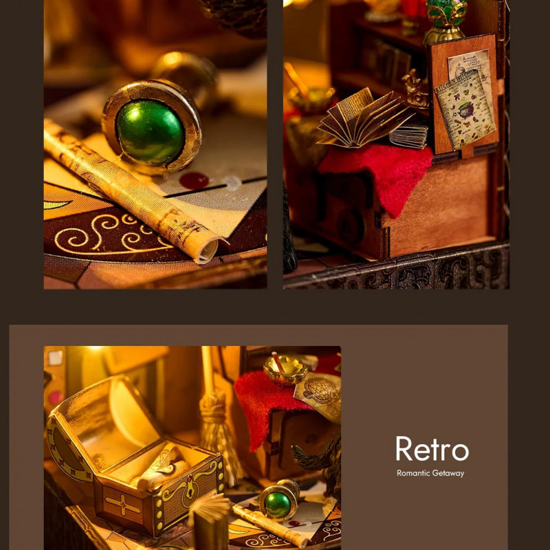 MORNING DEW MAGIC GLAZE – Buchstütze (Mini Book Nook), hauptsächlich aus Holz, zum Selbstzusammenbauen (Do It Yourself) durch Stecksystem und Kleben.