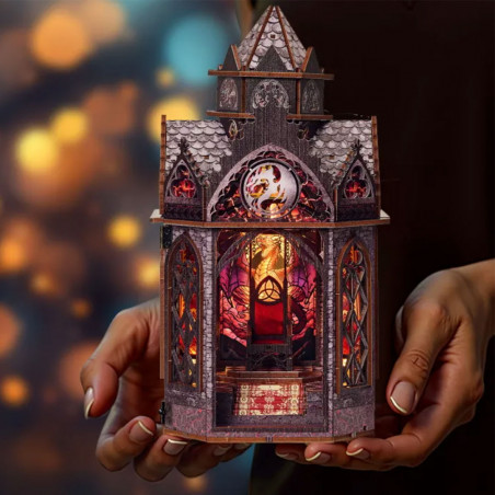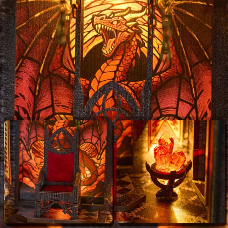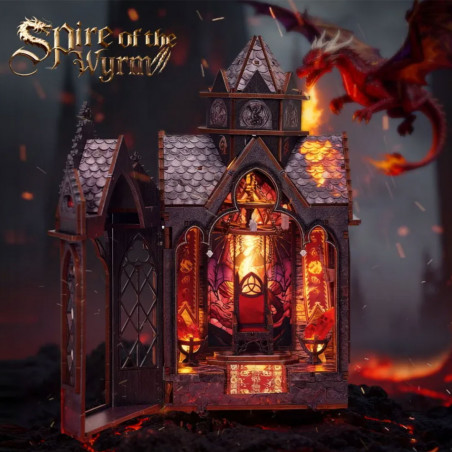 SPIRE OF THE WYRM – Buchstütze (Mini Book Nook), hauptsächlich aus Holz, zum Selbstzusammenbauen (Do It Yourself) durch Stecksystem und Kleben.
