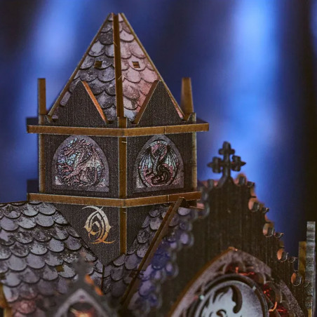 Betreten Sie den Drachenturm! Gotische Architektur und Lichteffekte sorgen für eine fantastische Atmosphäre.