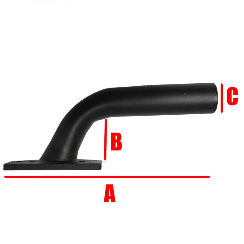 Gekröpftes Auspuffrohr für den Motor O.S. 108. Abstand der Bohrung: 34/52mm. Abmessungen: A = 140mm, B = 30mm, C = 20mm.