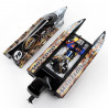 Das MAD FLOW Brushless wird in dieser Version komplett ausgestattet mit einem leistungsstarken Brushless-Elektromotor und einem wassergekühlten 30A Brushless-Regler, einem leistungsstarken, wasserdichten (WaterProof) 9g Lenkservo, einem Ruder und einer Schlauchübertragung geliefert.