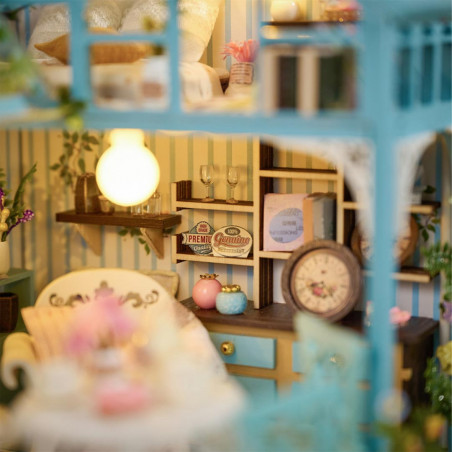 Blumige Träumerei, Miniaturhaus oder Puppenhaus, hauptsächlich aus Holz, Papier und Stoff zum Selberbasteln (Do It Yourself).