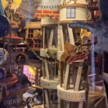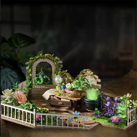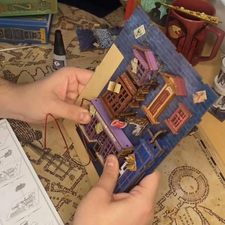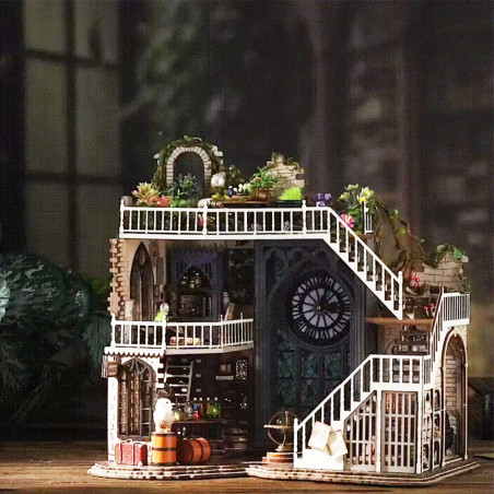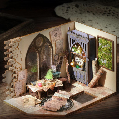 Zauberwerkstatt, Miniaturhaus oder Puppenhaus, hauptsächlich aus Holz, Papier und Stoff zum Selberbauen (Do It Yourself).