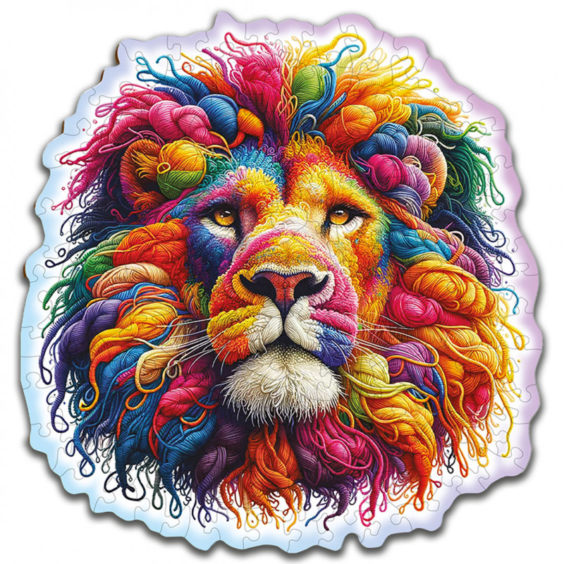 Entdecken Sie das Holzpuzzle “Traumhafte Regenbogenlöwe” mit 150 Teilen – eine atemberaubende und fantasievolle Kreation, die eine Löwe in leuchtenden Regenbogenfarben zum Leben erweckt.
