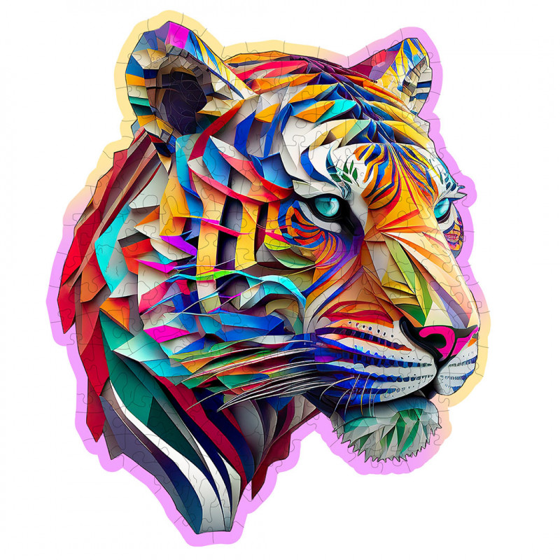 Entdecken Sie das Holzpuzzle “Traumhafte Regenbogentiger” mit 150 Teilen – eine atemberaubende und fantasievolle Kreation, die eine Tiger in leuchtenden Regenbogenfarben zum Leben erweckt.