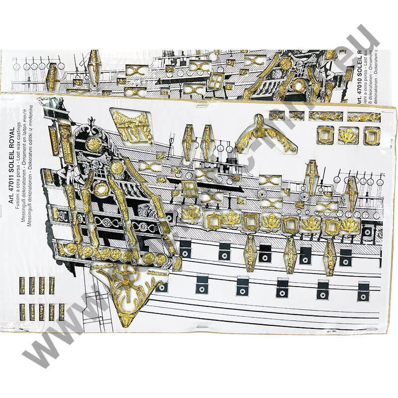Als ein Schiff erster Klasse war die Soleil Royal mit drei Laternen an der Spitze des Heck und einer weiteren Laterne auf dem Besanmast ausgestattet.