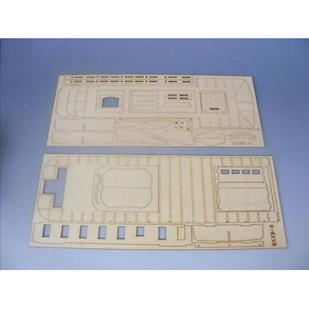 Die Struktur aus laser-geschnittenem Holz ermöglicht eine präzise Montage, während die zahlreichen dekorativen Elemente nach Fertigstellung des Modells ein realistisches Erscheinungsbild verleihen.