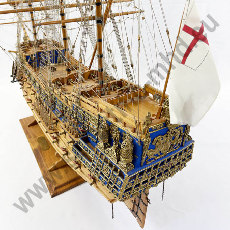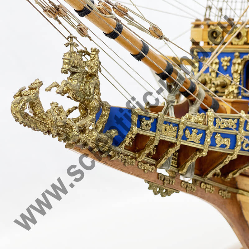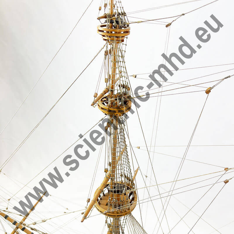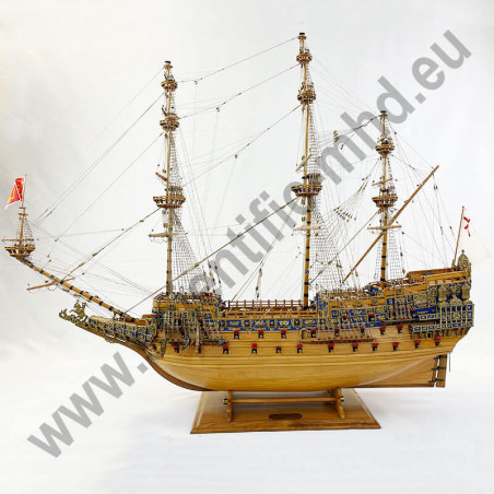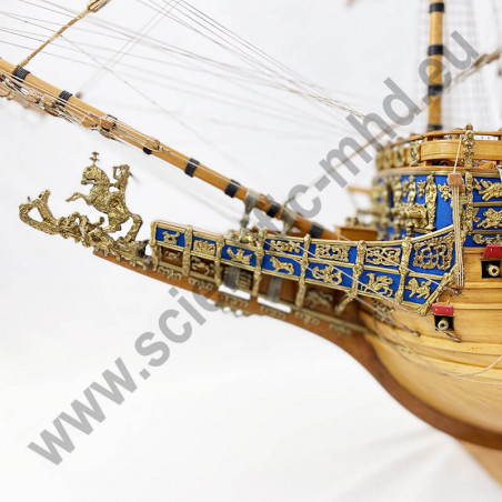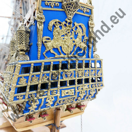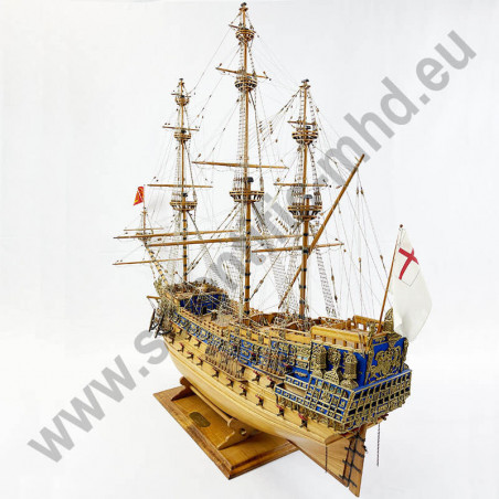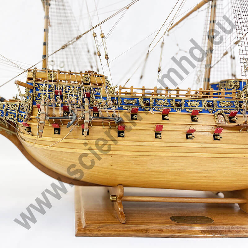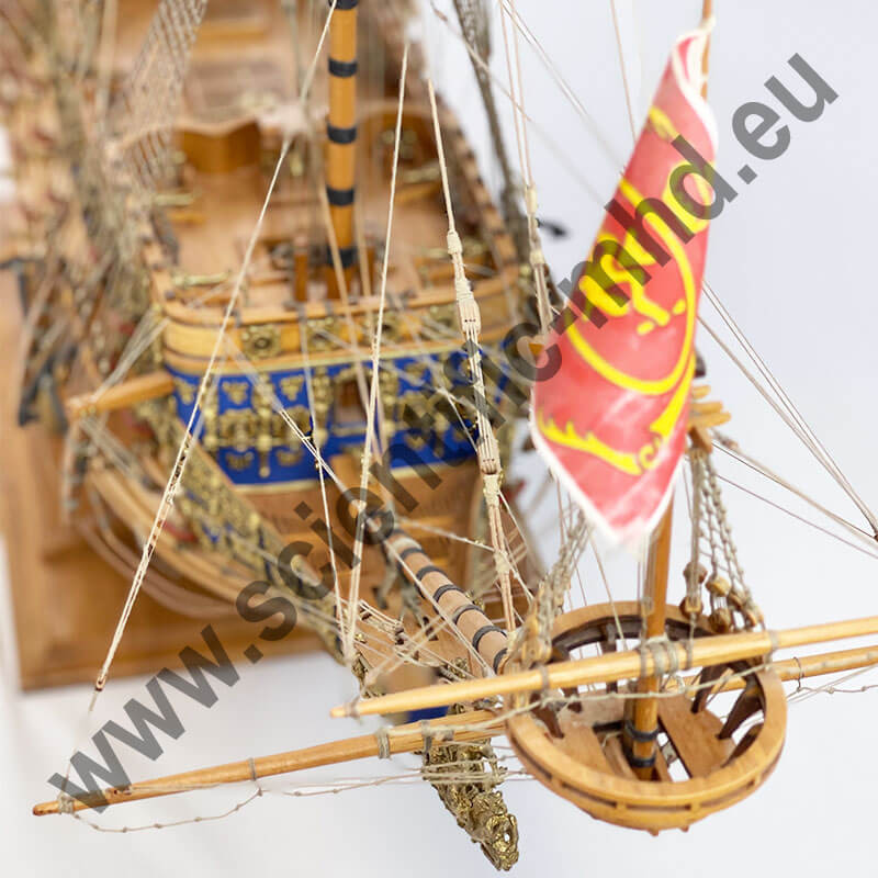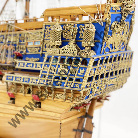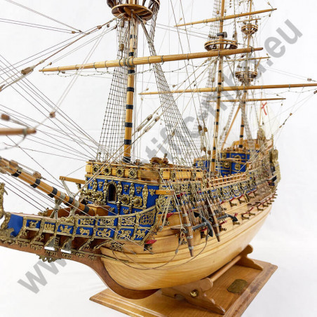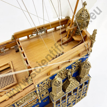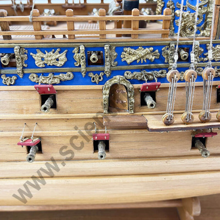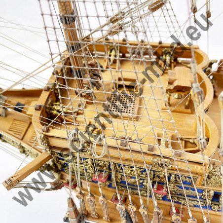 Das von Sergal hergestellte Modell ist eine einzigartige und sehr getreue Nachbildung. Konstruktion durch Kiel, Spanten und doppelte Beplankung, Teile werden laser-geschnitten für perfekte Passform. Die sehr schöne Aufbauten umfassen über 700 Teile aus bronziertem Zubehör und 102 gegossene Kanonen, Schafthüte und Holzrollen, bedruckte Seidenflaggen. Detaillierte Bauanleitungen auf 7 Blättern.
