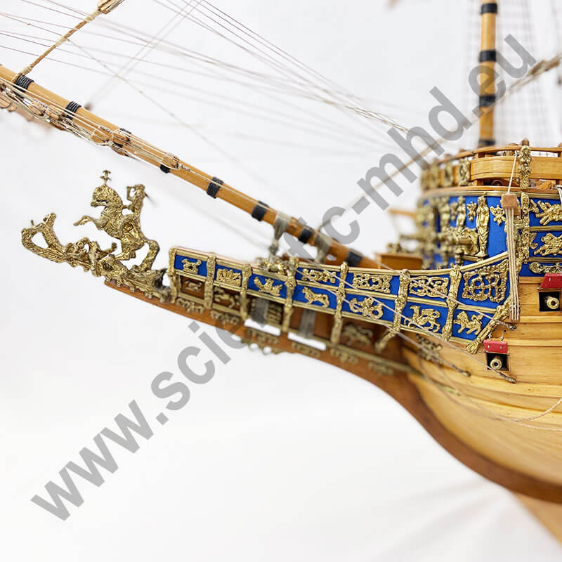 Symbolische Bedeutung: Die Sovereign of the Seas war nicht nur ein funktionales Kriegsschiff, sondern diente auch dazu, die Macht und das Prestige der englischen Krone zu demonstrieren. Die prächtigen Verzierungen und die aufwändigen Details zeugten von der Größe und Raffinesse der Monarchie. Es hatte sicherlich eines der prächtigsten Heckkastelle seiner Zeit.