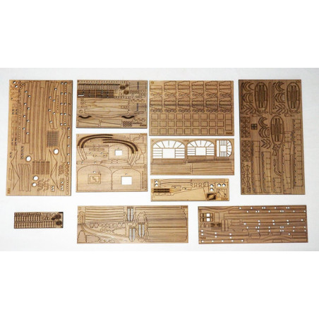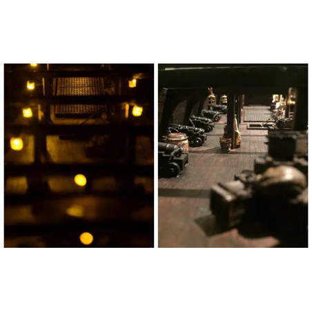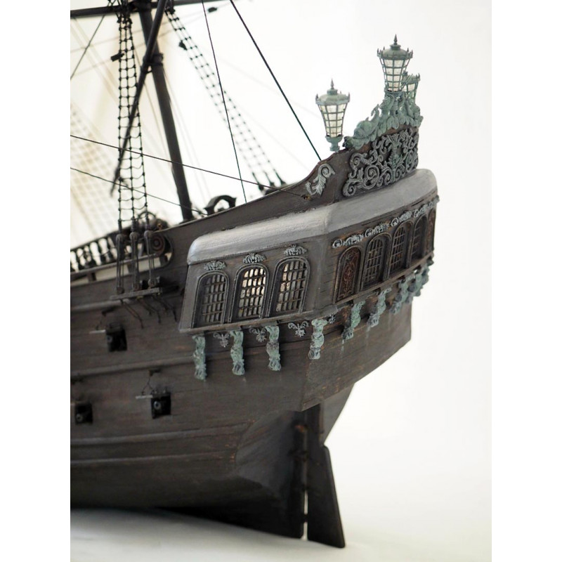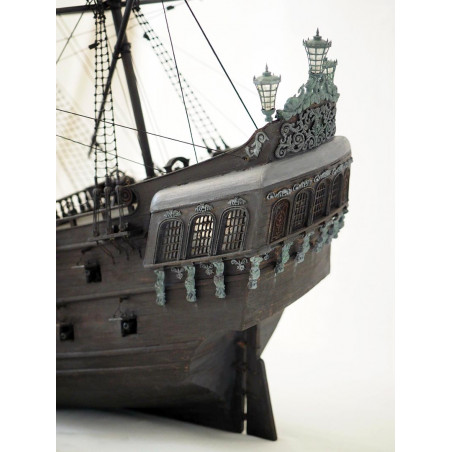 Dieses Modell Black Pearl ZHL 1/50 bietet eine vollständige Nachbildung mit sichtbarem Interieur und zusätzlichen dekorativen Elementen. Die Decks sind detailliert, die Kabinen sind eingerichtet und das mitgelieferte Zubehör ermöglicht ein realistisches Erscheinungsbild, wenn das Modell fertiggestellt ist.