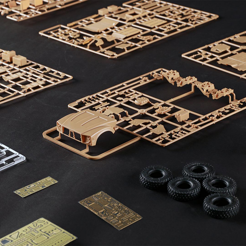 Plastikmodell eines gepanzerten US-Militärfahrzeugs, das durch Kleben zusammengesetzt und bemalt werden muss.
