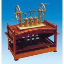 Cette pompe triple faisait partie de l’èquipement des grands clippers de la marine marchande anglaise. Elle se trouvait sur le pont supérieur et devait évacuer l’eau qui passait sous le pont, afin d’assurer la sécurité du navire. Elle était manipulée par 2 marins. Le kit contient toutes les pièces et les instructions de montage.