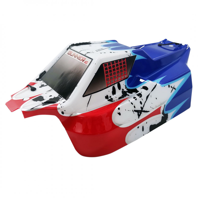 Blau / weiß / rot lackierte und ausgeschnittene Karosserie für Buggy Gunner 4S