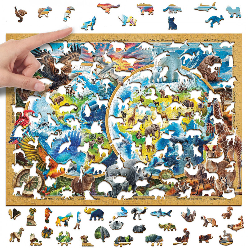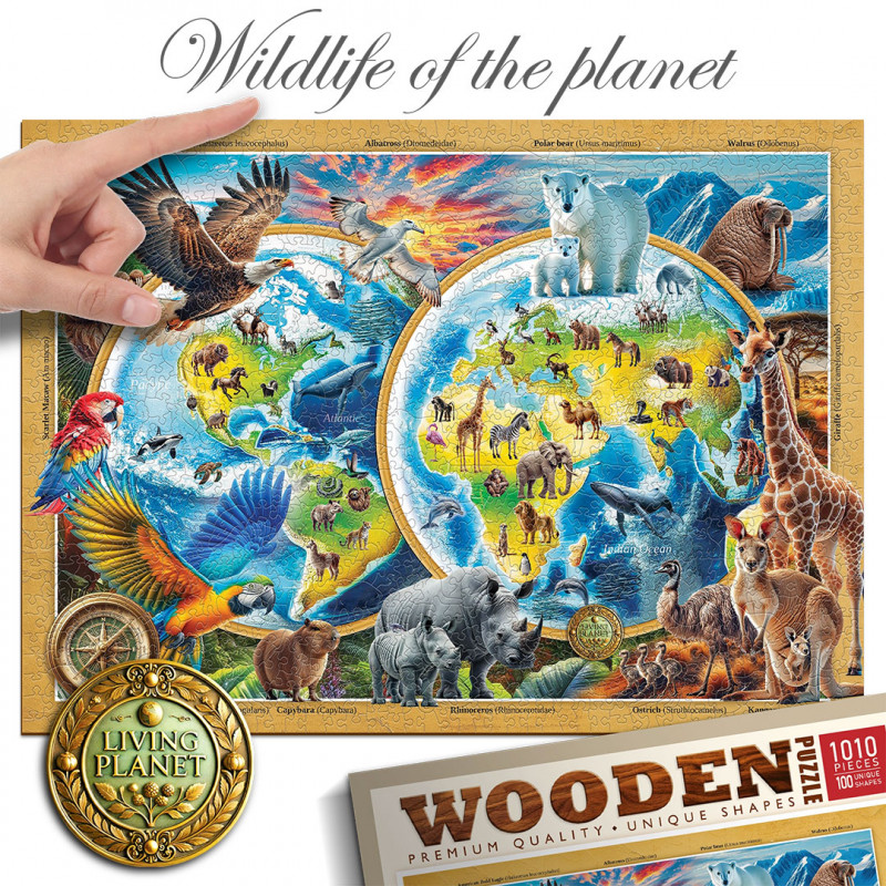 Erleben Sie mit dem Holzpuzzle Wildlife of the Planet 1000 Teile ein einzigartiges Abenteuer, das Kunst, Geografie und Natur verbindet – ideal als Jigsaw Puzzle für Erwachsene.