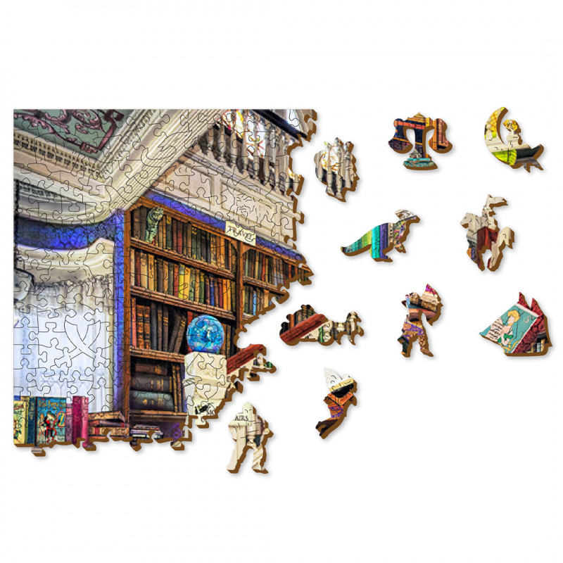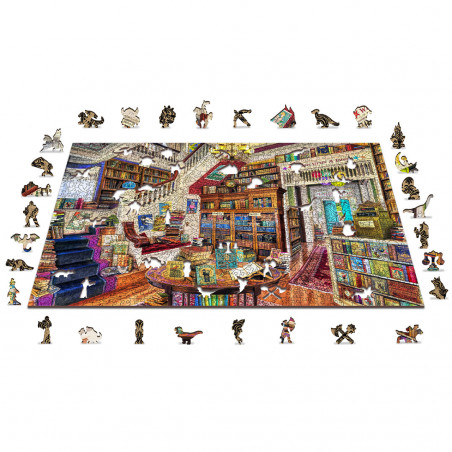 Mit seiner thematischen Library-Dekoration enthält das Puzzle Teile in Form von Büchern und Symbolen der Literatur, die den Puzzlespaß noch vertiefen.