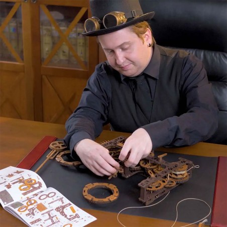 - Sie haben schon immer davon geträumt, den Mechanismus einer Uhr in Betrieb zu sehen? Jetzt ist das möglich, und Sie können sie sogar selbst zusammenbauen. Diese Uhr im gepflegten Steampunk-Design offenbart ihren gesamten Mechanismus.